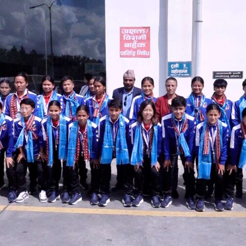 काठमाडौं । साफ यू–२० महिला च्याम्पियनसिपमा उपविजेता बनेको नेपाली टोली स्वदेश फर्किएको छ । मंगलबार स्वदेश फर्किएका टोलीलाई त्रिभुवन विमानस्थलमा अखिल नेपाल फुटबल संघ(एन्फा) का केन्द्रीय सदस्य तथा महिला कमिटी संयोजक सरिला श्रेष्ठ मलेकु र प्रवक्ता सुरेश शाहले स्वागत गरेका थिए ।