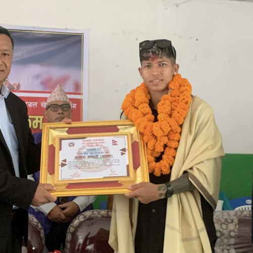 लमजुङ । लमजुङको मस्र्याङ्दी गाउँपालिकाले नेपाली महिला राष्ट्रिय फुटबल टिमकी कप्तान सावित्रा भण्डारी (साम्बा)लाई सम्मान गरेको छ ।