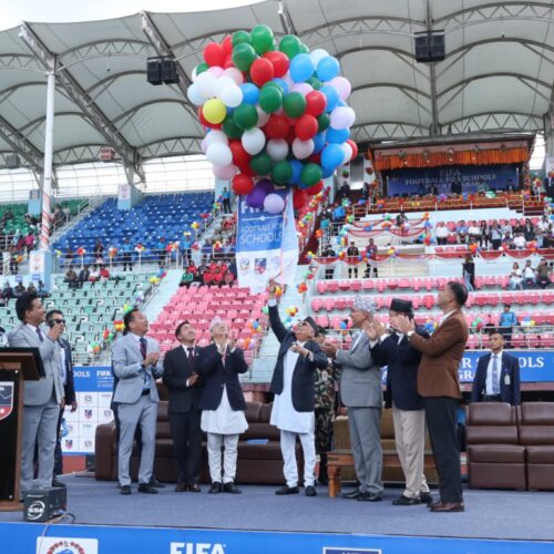 काठमाडौँ । प्रधानमन्त्री केपी शर्मा ओलीले ‘फिफा फर स्कुल’ अभियानको शुभारम्भ गरेका छन् । अखिल नेपाल फुटबल संघ (एन्फा) द्वारा बिहीबार दशरथ रंगशालामा आयोजित कार्यक्रममा प्रधानमन्त्री ओलीले फिफाको सहयोगमा करिब एक हजार विद्यालयलाई निःशुल्क फुटबल वितरणको शुभारम्भ गरेका हुन् ।