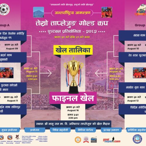 ताप्लेजुङ । तेस्रो अन्तर्राष्ट्रिय ताप्लेजुङ गोल्डकप यही साउन २४ गतेदेखि सुरु हुने भएको छ । पाथीभरामा आज आयोजिक कार्यक्रममा आयोजकले खेल तालिका सार्वजनिक गरेको हो ।