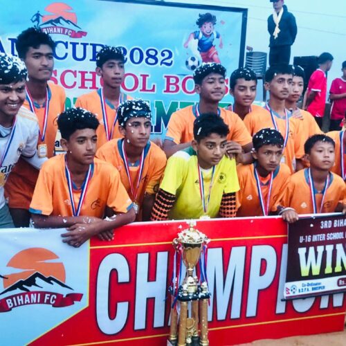 भोजपुर । भोजपुरको स्थानीय टुँडिखेलमा शनिबार भएको तेस्रो बिहानी कप अण्डर–१६ अन्तर विद्यालयस्तरीय फुटबल प्रतियोगिताको उपाधि सिद्धेश्ववर मावि दाँवाले जितेको छ । तेस्रो बिहानी कप फुटबल प्रतियोगिता युनिक एण्ड युनाइटेड पब्लिक एकाडेमीलाई सुटआउटमा हराउँदै सिद्धेश्वर विजयी भएको हो ।