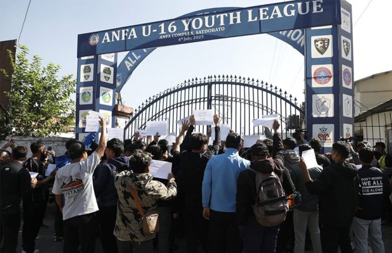 बिहीबार खेलाडी र समर्थकहरुले एन्फा मुख्यालय अगाडि प्रदर्शन गर्दै धर्ना दिएका हुन् । उनीहरुले एन्फा भित्रको नेतृत्व विवाद र आर्थिक पारदर्शिताको मुद्दाले नेपाली फुटबललाई लामो समयदेखि गाँजेको बताएका छन् ।
