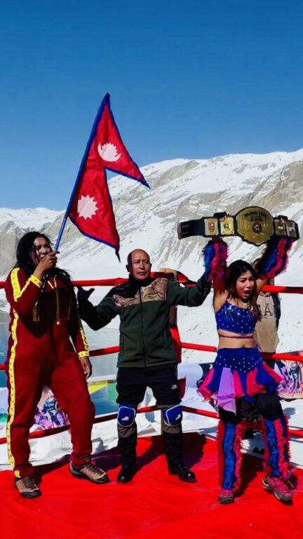 मनाङ । नेपाल महिला रेस्लिङ्ग फाउन्डेसनको आयोजनामा बुधबार दिन मनाङको ङिस्याङ्ग गाउँपालिका वडा नम्बर ९ मा संसारकै अग्लो स्थानमा रहेको तिलिचो तालमा राष्ट्रिय र अन्तर्राष्ट्रिय खेलाडीहरुको उपस्थितिमा २ वटा रेस्लिङ्ग महाभिडन्त भव्य रूपमा सम्पन्न भएको छ ।
