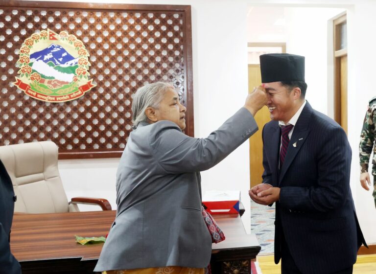 काठमाडौँ । राष्ट्रिय खेलकुद परिषद्का सदस्यसचिव टङ्कलाल घिसिङले प्रधानमन्त्री सुशीला कार्कीसँग बिदाइ भेट गरेका छन् ।
