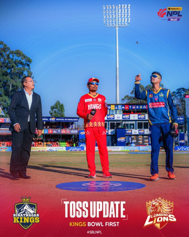 काठमाडौ । नेपाल प्रिमियर लिग (एनपीएल) को दोस्रो क्वालिफायरमा विराटनगर किंग्सले लुम्बिनी लायन्सविरुद्ध पहिले बलिङ गर्ने भएको छ । त्रिवि क्रिकेट मैदानमा विराटनगरका कप्तान सन्दीप लामिछानेले टस जितेर बलिङको निर्णय लिएका हुन् ।