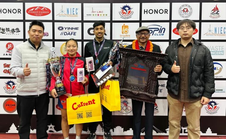 कामठाडौं । पाँचौँ अल नेपाल अन्तरवडा राष्ट्रिय टेबलटेनिस प्रतियोगिता ललितपुर महानगरपालिका—८ का रुविन महर्जन र शिवसताक्षी—८ की इभाना थापाले स्वर्ण पदक जितेका छन् । खुला सिङ्गल्सको पुरुषमा रुविन र महिलामा इभाना च्याम्पियन बनेका हुन् ।