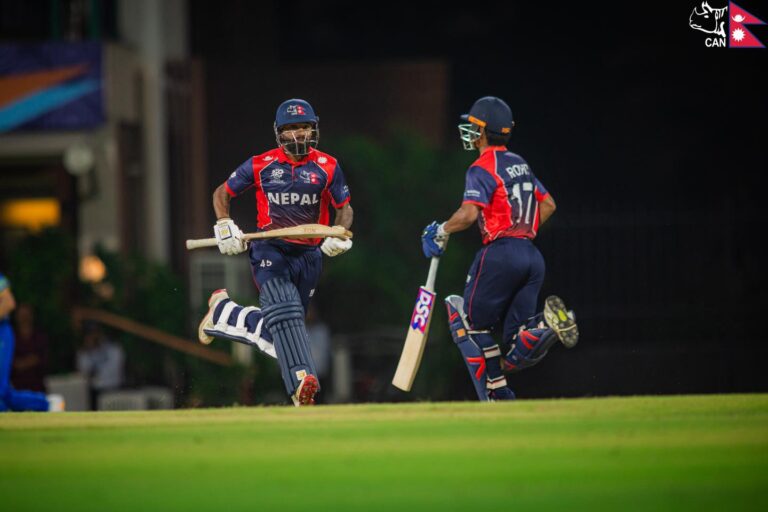 नेपाललाई जित दिलाउन आरिफ शेख र दीपेन्द्र सिंह एरीले अर्शसतक बनाए । ६.५ ओभरमा ४५ रन बनाउँदा तीन विकेट गुमाएको नेपालको लागि दीपेन्द्र सिंह एरी र आरिफ शेखले सतकीय साझेदारी गर्दै जिततर्फ डोर्याएका हुन् ।