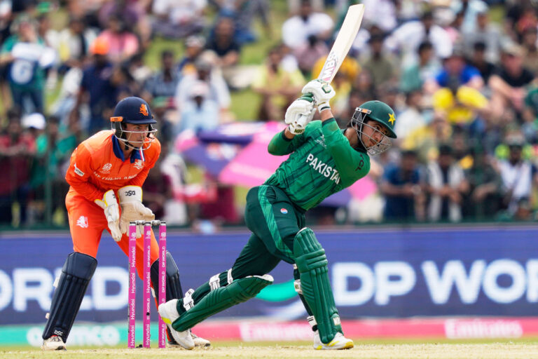 शनिबार श्रीलंकाको कोलम्बोमा भएको खेलमा नेदरल्यान्ड्सले प्रस्तुत गरेको १४८ रनको लक्ष्य पाकिस्तानले १९.३ ओभरमा सात विकेट गुमाएर पूरा गरेको हो । पाकिस्तानको जितमा ओपनर साहिबजादा फरहानले सर्वाधिक ४७ रन बनाए । उनले ३१ बलमा चार चौका र दुई छक्का प्रहार गरे ।