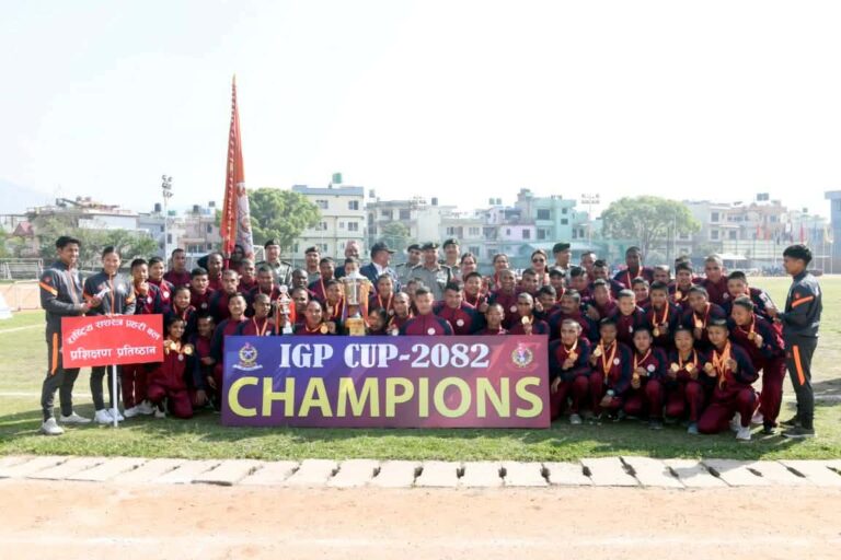 काठमाडौँ । ‘सशस्त्र प्रहरी महानिरीक्षक कप–२०८२’ को ट्रफी राष्ट्रिय सशस्त्र प्रहरी बल नेपाल प्रशिक्षण प्रतिष्ठान मातातीर्थले जितेको छ ।
