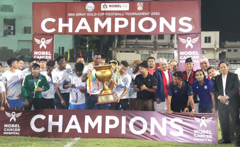 विराट गोल्डकप फुटबल ट्रष्टद्वारा विराटनगरको शहीद रङ्शालामा खेल सञ्चालन हुँदै आएको थियो। कोशी प्रदेशका सभामुख अम्बरवहादुर विष्ट, प्रदेशका पर्यटन, वन, तथा वातावरणमन्त्री भीम पराजुली, विराटनगर महानगर प्रमुख नागेश कोइराला र ट्रष्टका अध्यक्ष किशोरबहादुर शाहीलगायतले विजेता एवं उपविजेतालाई ट्रफि एवं नगद पुरस्कार प्रदान गरेका थिए। प्रतियोगितामा नेपाल र भारतका गरी आठ टिमको सहभागिता थियो।