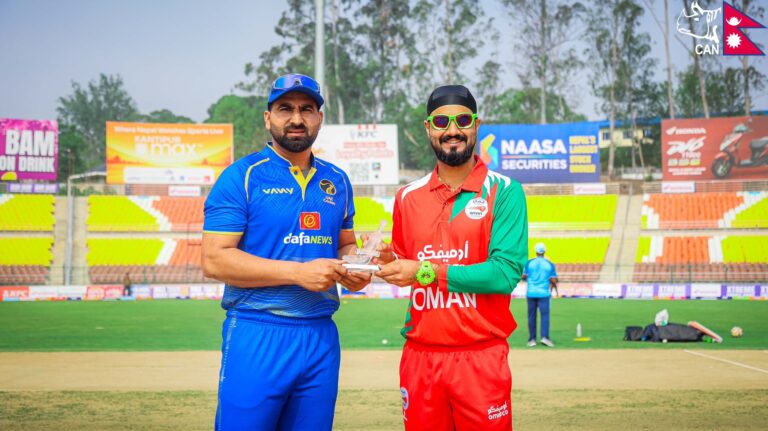 ओमानका लागि विनायक शुक्लाले अविजित ५८ रनको योगदान भने कप्तान जतिन्दर सिंहले ४६ रन जोडे ।