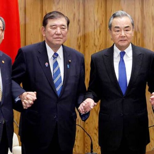 गत बर्षको मे महिनामा सियोलमा भएको दुर्लभ त्रिपक्षीय शिखर सम्मेलनपछि शनिवार भएको वार्तामा ऐतिहासिक र क्षेत्रीय विवादबाट गुज्रिरहेका छिमेकीहरू सम्बन्धलाई प्रगाढ बनाउन सहमत भएका हुन् । उनीहरूले कोरियाली प्रायद्वीपमा आणविक निःशस्त्रीकरणको आफ्नो लक्ष्यलाई दोहोर्याएका छन् ।