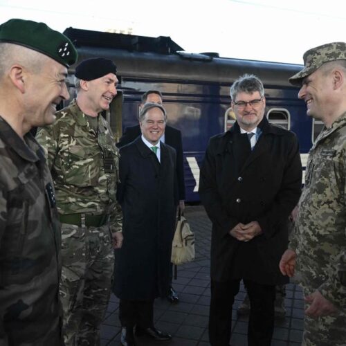 फ्रान्सेली र बेलायती सैन्य प्रमुखहरूको किएभ भ्रमण त्यही दिन भएको थियो जुन दिन रुसको बालिस्टिक मिसाइल आक्रमणमा जेलेन्स्कीको गृह सहर क्रिभी रिगमा नौ बालबालिकासहित कम्तीमा १८ जनाको मृत्यु भएको अधिकारीहरूले बताए ।