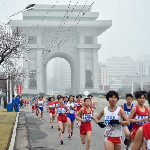 सन् १९१२ मा जन्मेका उत्तर कोरियाका संस्थापक नेता किम इल सुङको जन्मोत्सव मनाउन आयोजित दौड प्रतियोगिता अघि विदेशी खेलाडीहरू सहरमा आइपुगेका थिए ।
