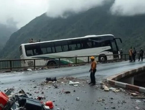 शनिबार क्विन्डियो क्षेत्रको हेलिकोइल ब्रिजको छेउमा रहेको अवरोधमा ठोक्किँदा धेरै मानिस बसबाट खसेको प्रहरी कमान्डर लुइस फर्नान्डो अतुएस्टाले बताए ।