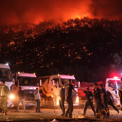 उत्तरपश्चिम टर्कीको बुर्सा वरपरका जङ्गली पहाडहरूमा रातभरको आगो द्रुत गतिमा फैलिएपछि सहरको पूर्वी उपनगरहरूमा रातको आकाशलाई रातो बनाएको थियो ।