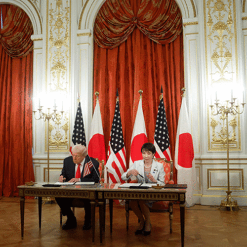 एसिया भ्रमणको दोस्रो चरणमा जापान पुगेका राष्ट्रपति ट्रम्पले ताकाइचीसँगको भेटमा जापानलाई ‘सबैभन्दा बलियो सहयोगी’ भन्दै व्यापार र सुरक्षामा सहकार्यलाई अझ सुदृढ बनाउने प्रतिबद्धता जनाए ।