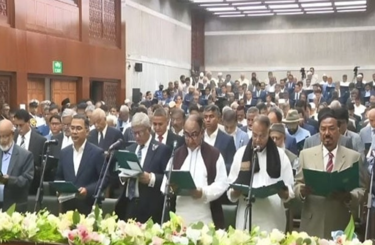 ढाका । बङ्गलादेशका भावी प्रधानमन्त्री तारिक रहमान र सांसदहरूले मङ्गलबार संसदको शपथ लिएका छन् । उनीहरु सन् २०२४ को घातक विद्रोह पछि पहिलो पटक निर्वाचित प्रतिनिधि हुन ।