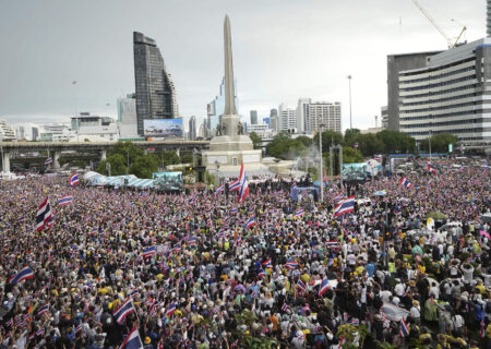 थाइल्याण्डका प्रधानमन्त्रीको राजीनामा माग्दै हजारौँ नेता तथा सर्वसाधारण सडकमा