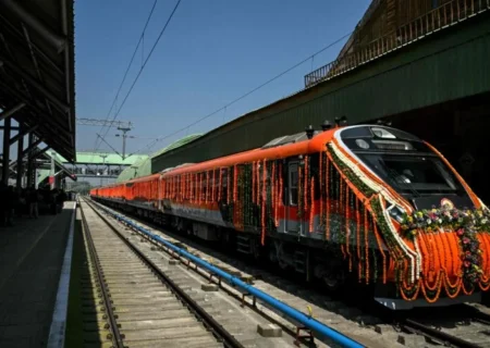 रणनीतिक रेलवे उद्घाटन गर्न भारतीय प्रधानमन्त्री मोदी काश्मीरमा